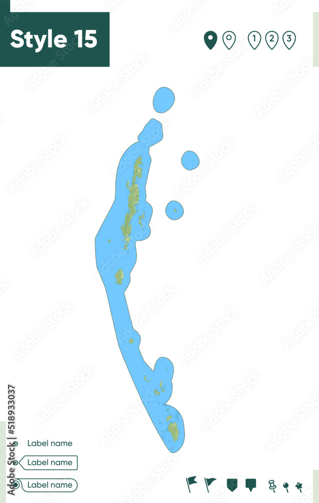 Andaman And Nicobar Islands, India map with shaded relief, land
