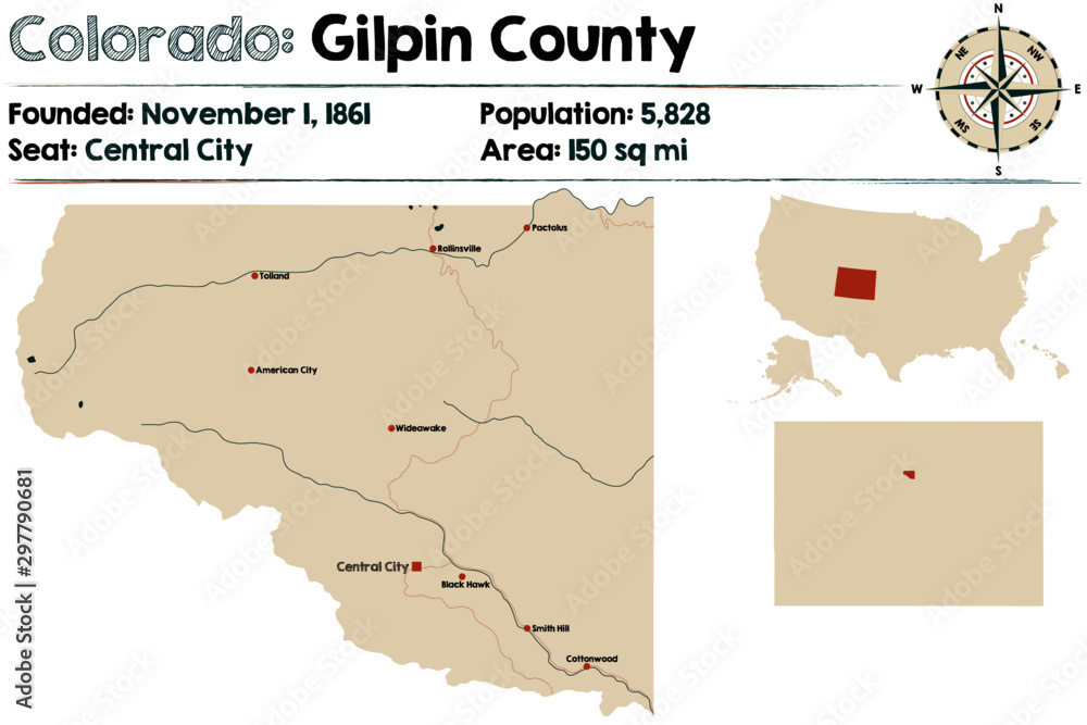 Large and detailed map of Gilpin county in Colorado, USA Stock