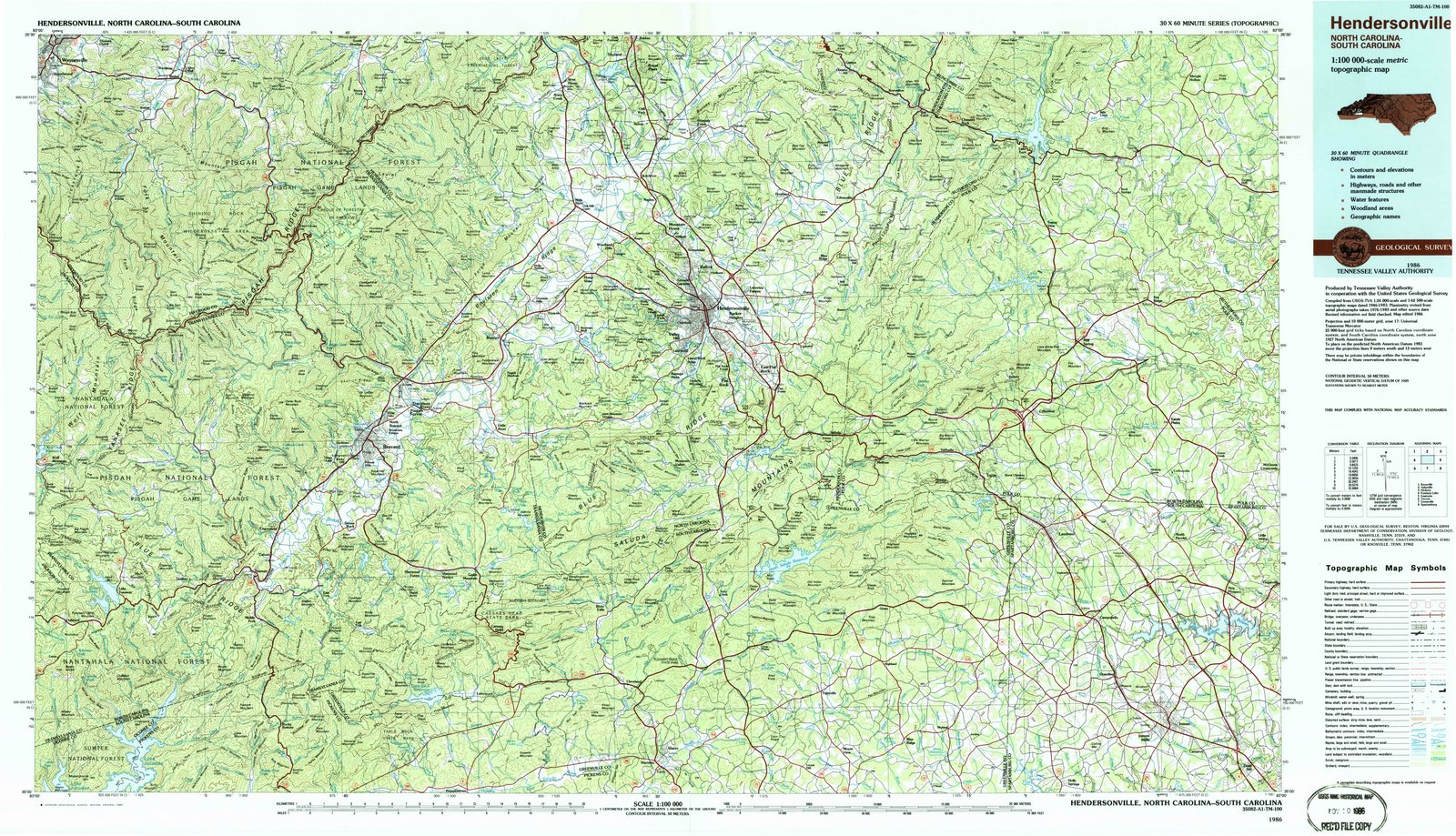 1986 Hendersonville, NC North Carolina USGS Topographic Map