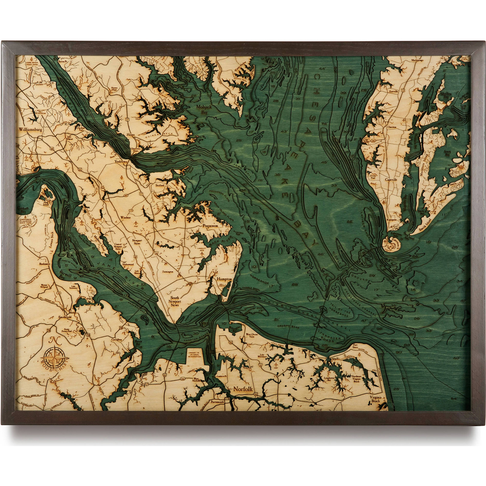 Norfolk, VA Wood Carved Topographic Depth Chart / Map Etsy