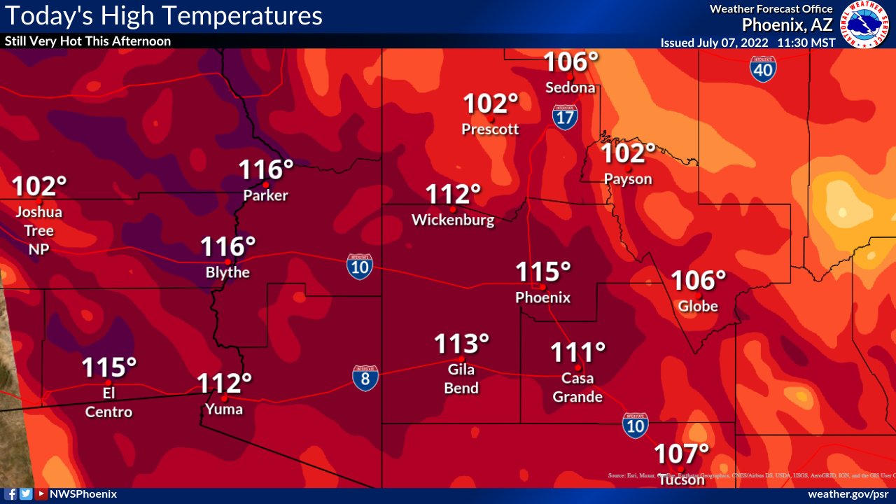 NWS Phoenix on X: “Today’s high temps have been adjusted down
