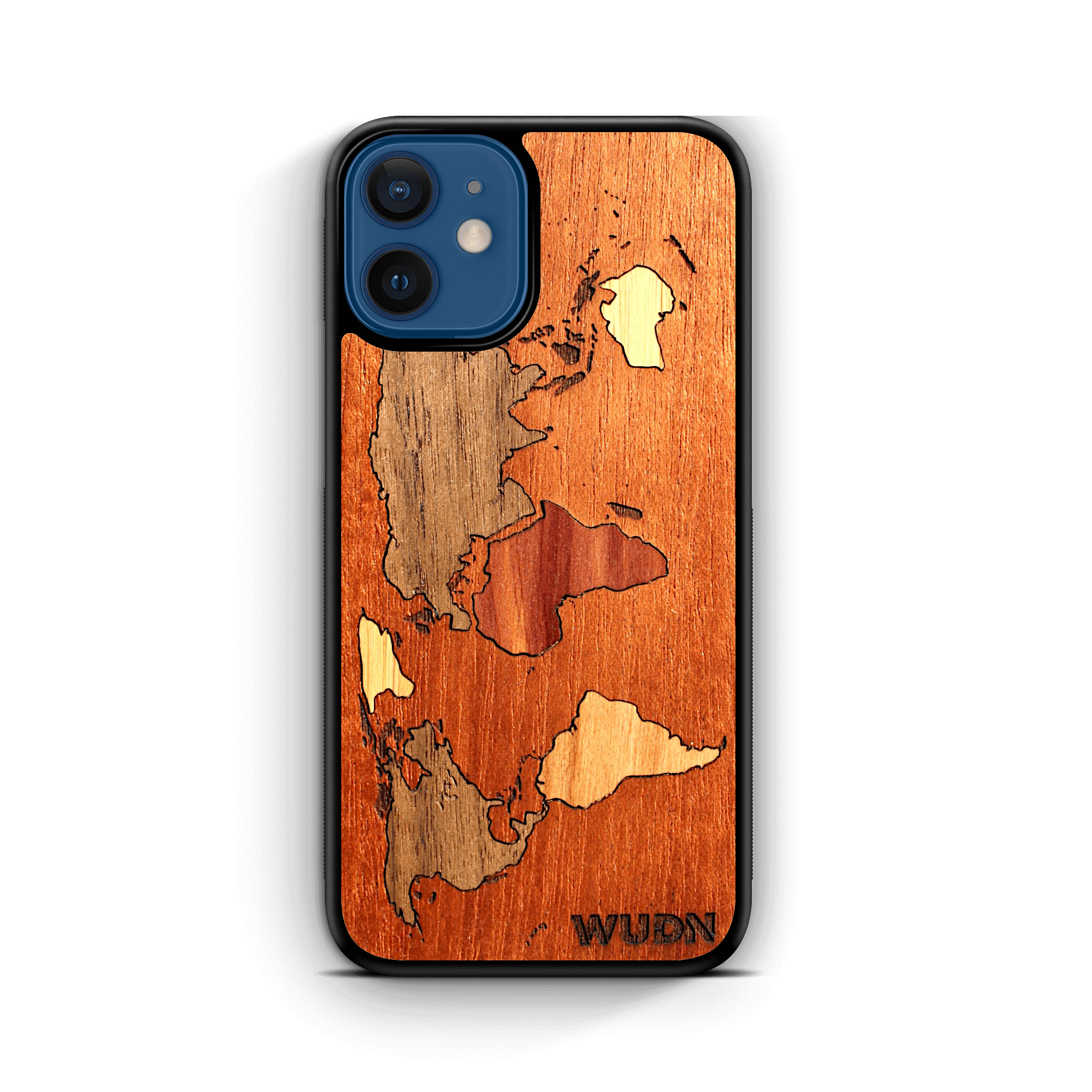Wooden Phone Case World Map Inlay, Walnut & Bamboo